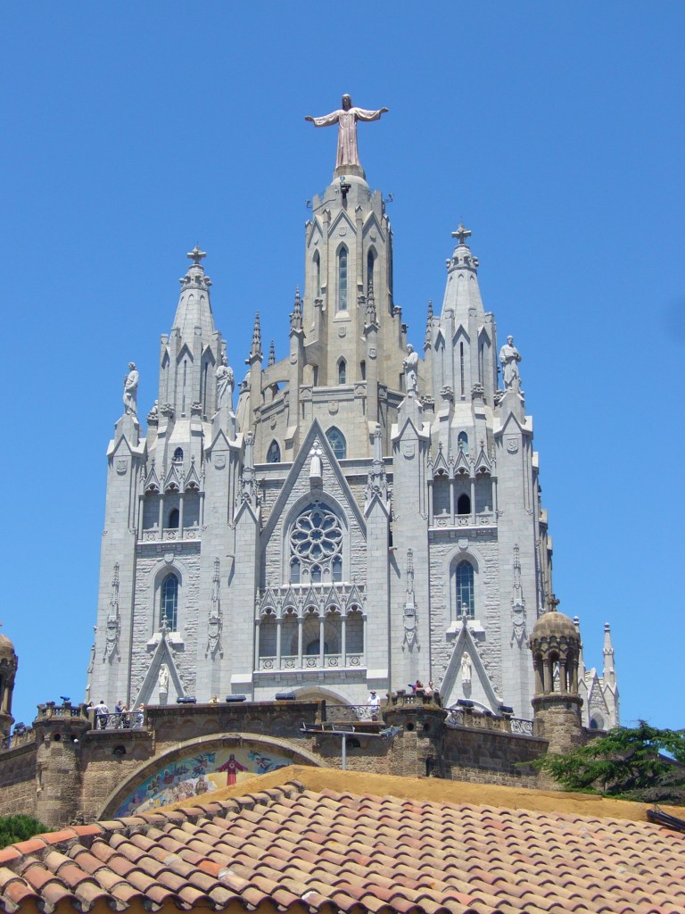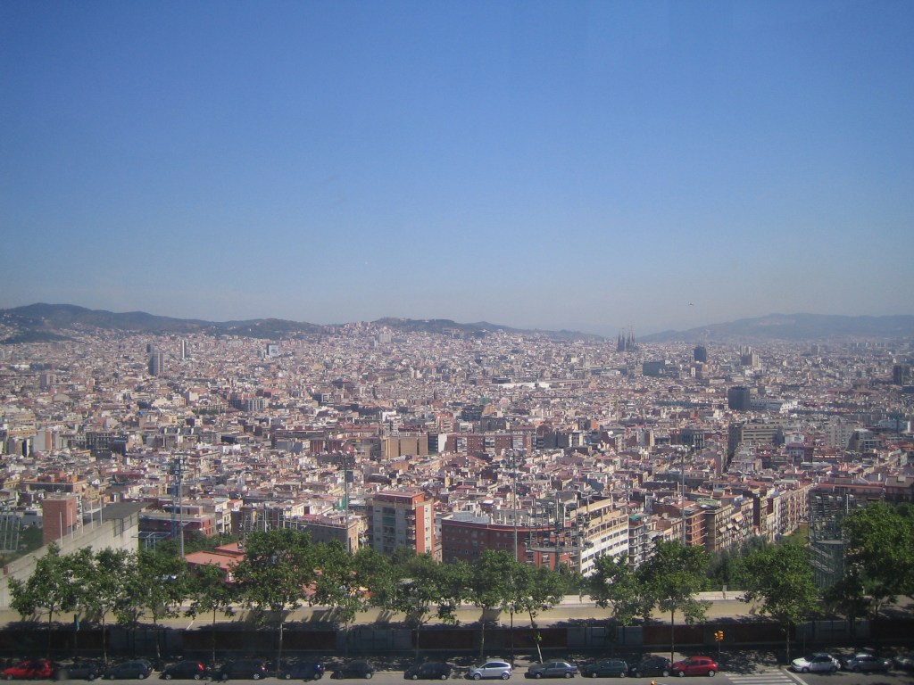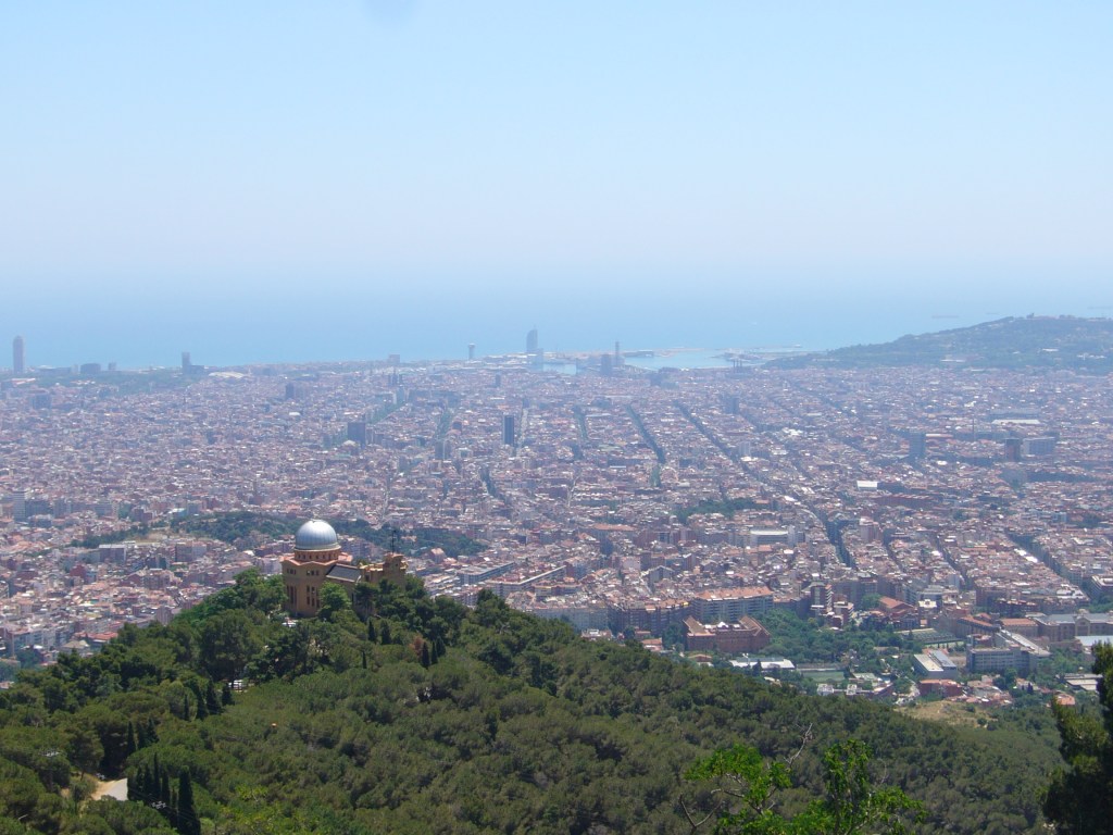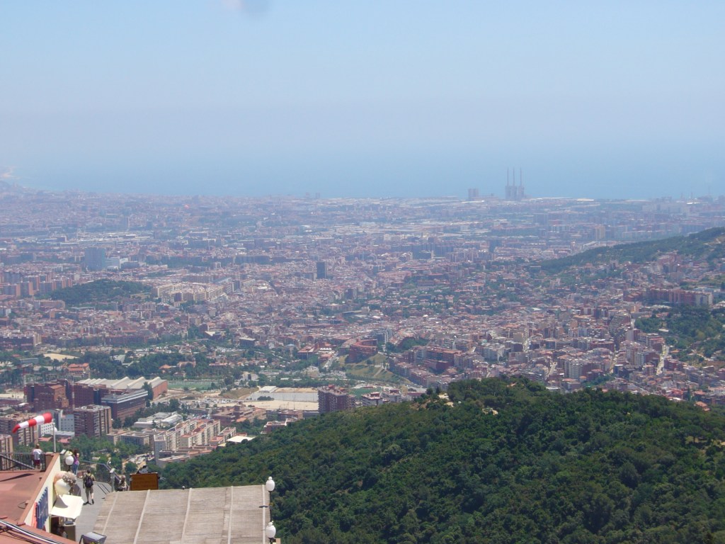 Views from outside of the city near the Temple of the Sacred Heart of Jesus, with La Sagrada Familia visible in the distance: