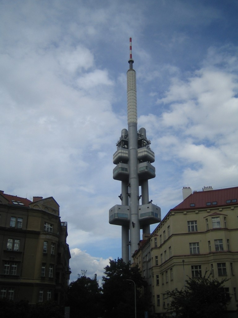 The “old fashioned futuristic looking” Žižkov Television Tower, note the little baby statues dotting the tower!: