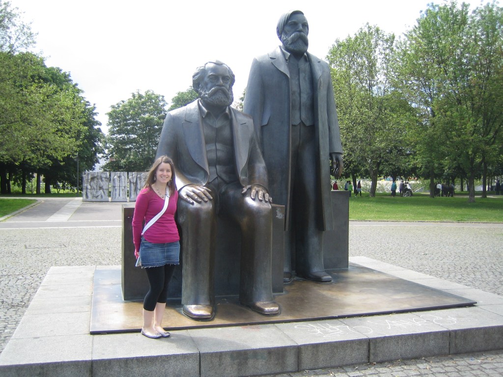 The Marx-Engels-Forum (public park) in the Mitte district. Karl Marx, Friedrich Engels and Liz: