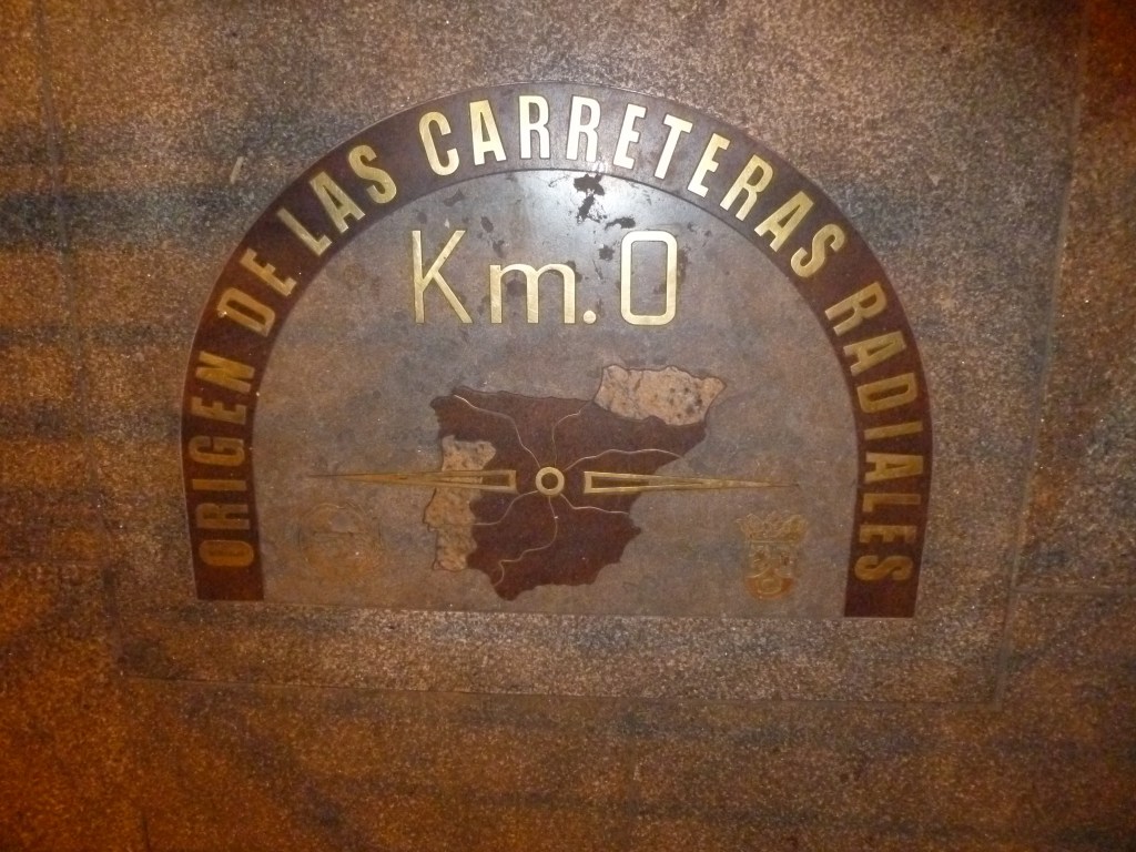 On the floor near the Puerta del Sol is the Origen de las Carreteras Radiales plaque which marks the origin of the six national radial highways , which leave Madrid for the Basque Country, Catalonia, Valencia, Andalusia, Extremadura and Galicia: