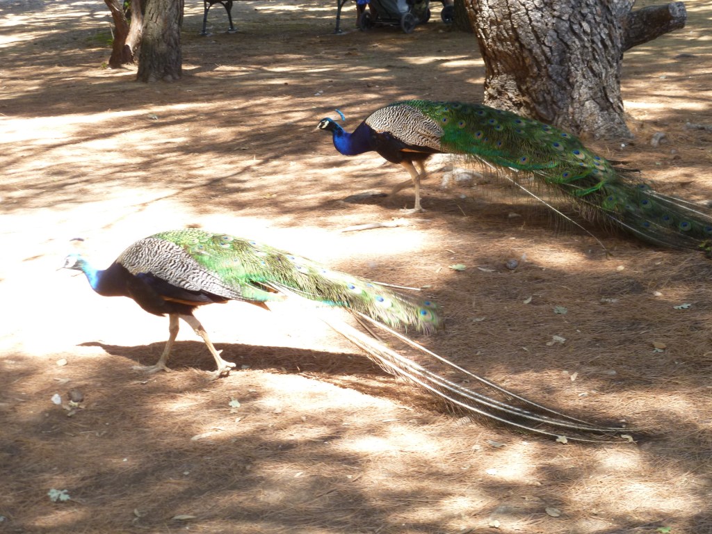 The island has a burgeoning peacock population: