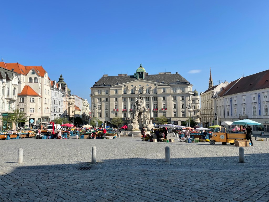 After a short read in the sunshine I headed to the so-called “Cabbage Market Square” at Zelný trh. There are regular markets here, selling fruit and veg and various juices and drinks. The tradition dates from the 12th century apparently.
