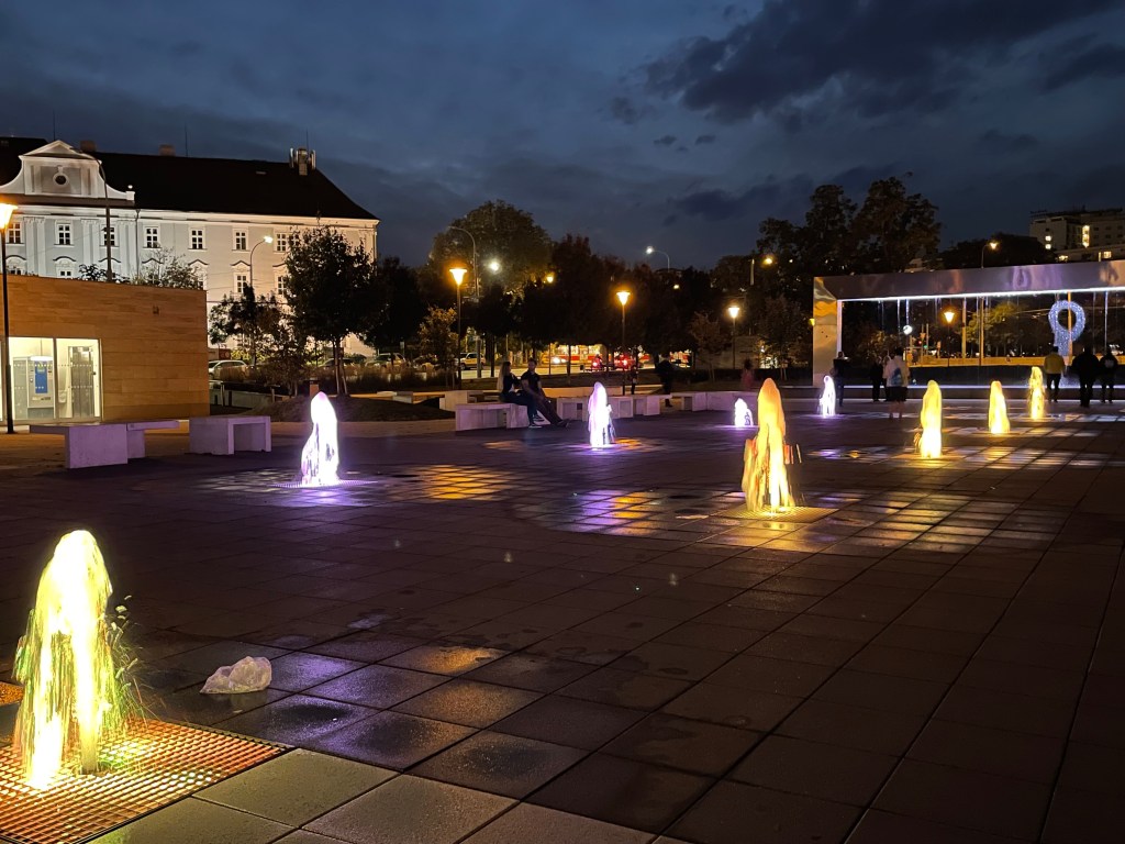 In the evening I took a stroll around the Park Lužánky area and then settled down near the National Theatre to watch the water mirror and mini fountains for a while: