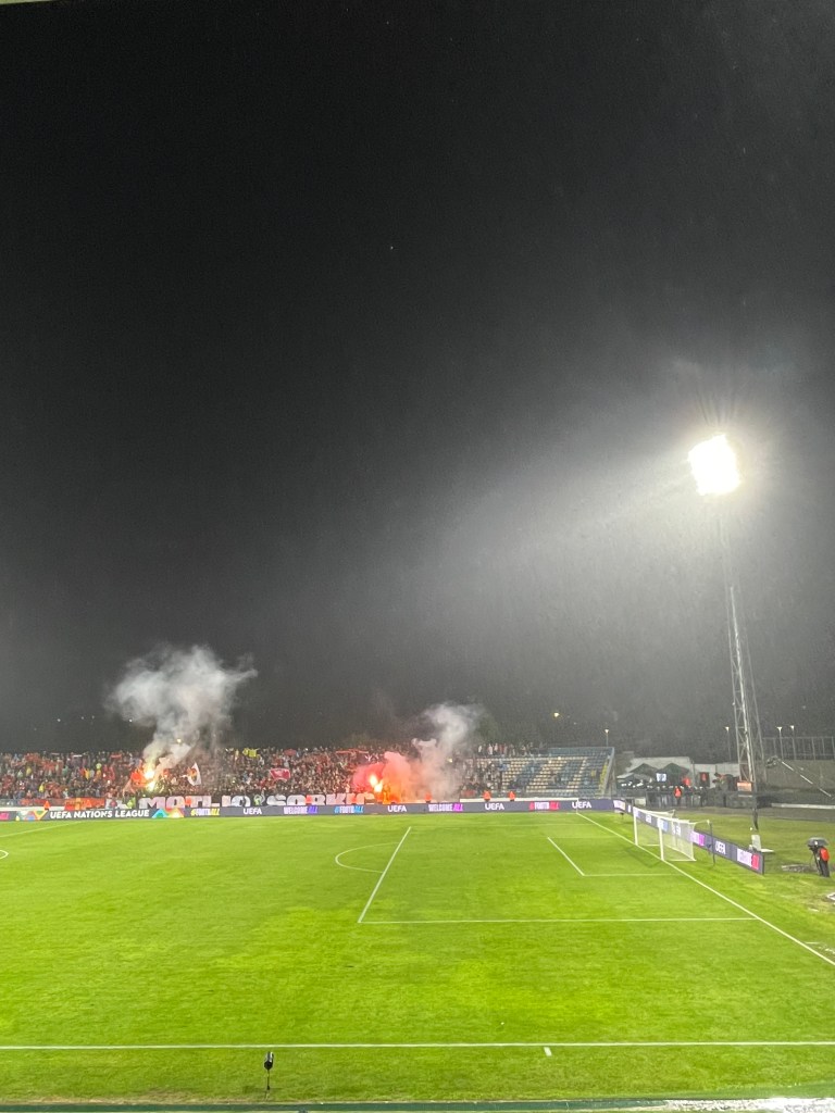 Due to the dire state of Montenegro’s usual home stadium in Podgorica the match had been moved to Nikšić, an hour north west of the capital.